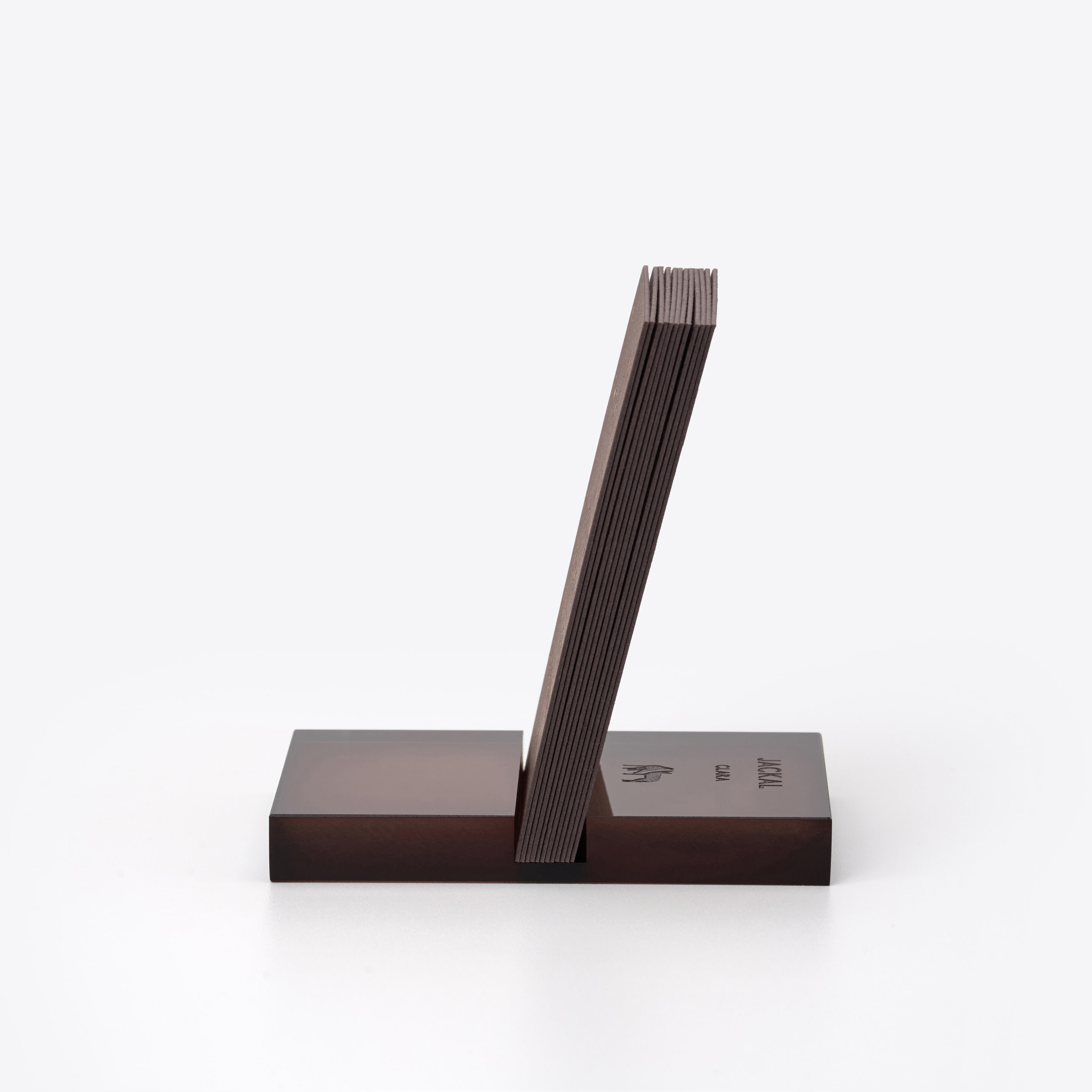 小さくて潔いシルエットのCLARA(クララ)。優しい風合いの厚紙に大人しやかに輝く箔文字と、ひとつひとつ丁寧に染色されたアクリルの台座は、側面にブラスト加工が施され、光の当たり方によって表情が変わります。